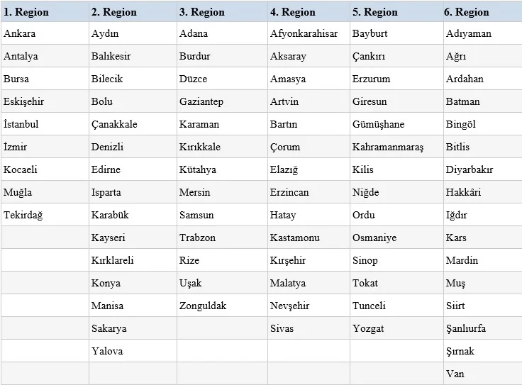 İllerin Yatırım Teşvik Bölgeleri Dağılımı (01.01.2021 tarihinden itibaren geçerlidir.)